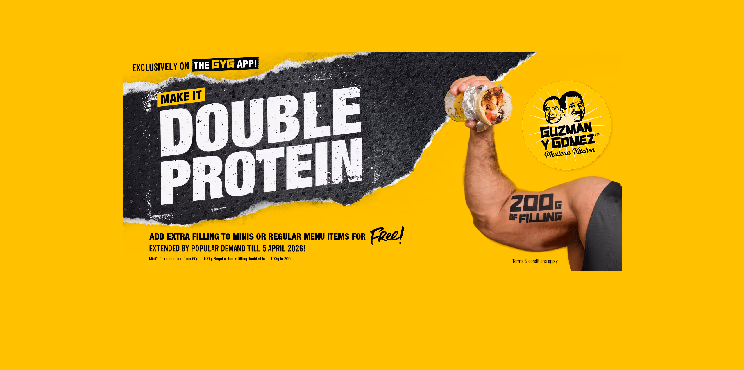 At Guzman y Gomez (GYG), our passion is creating delicious food out of real ingredients. Up to 24-hour marinades, chip-tasting sessions, and chillies really get us excited! We are more than just a Mexican restaurant in Singapore - we believe in no shortcuts, using fresh ingredients, and authentic techniques. It’s not always easy, but it’s always worth it. Check out our Mexican food menu below. ¡Buen provecho!