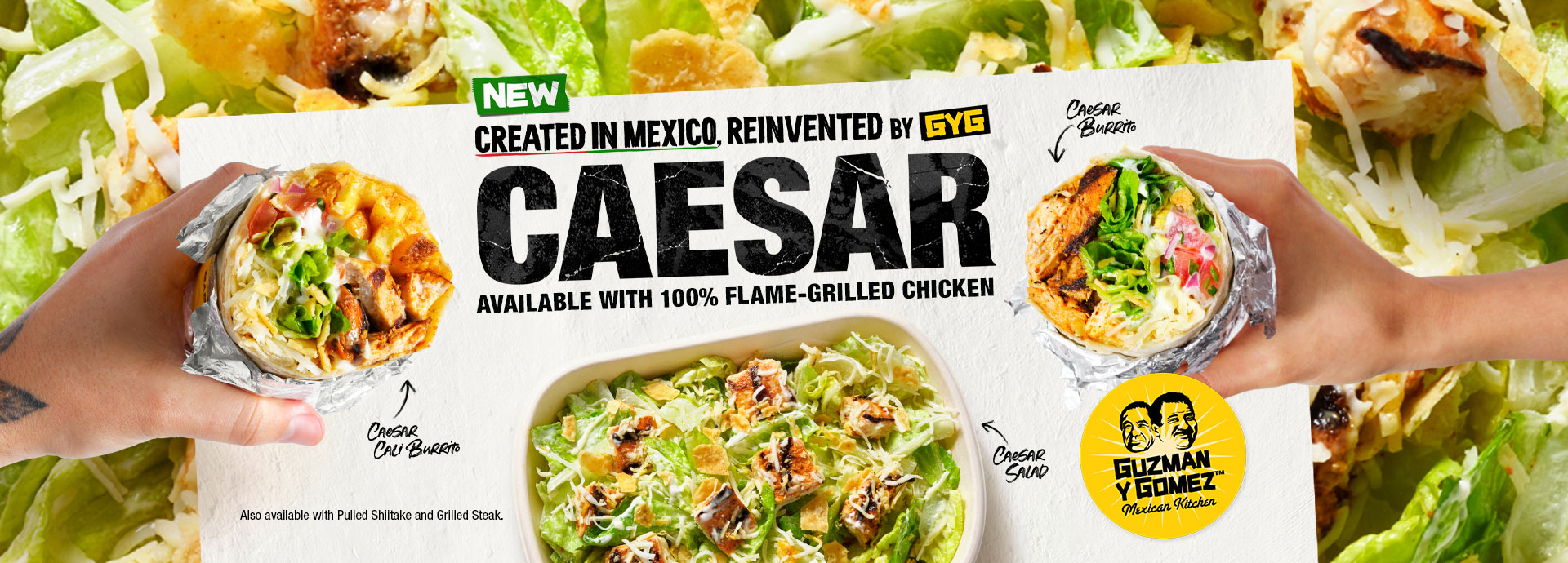 Introducing our Caesar Salad, Caesar Burrito and Caesar Cali Burrito! We are shaking up the iconic salad in a BIG way, whilst putting our GYG twist on it!